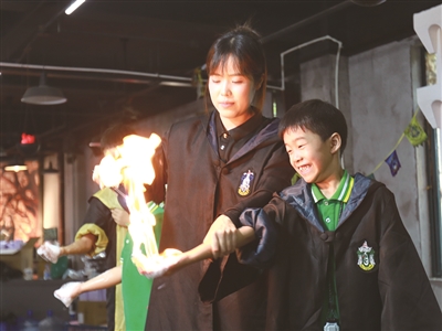 “科学魔法秀”课堂中,老师通过火焰掌、空气炮等多个趣味小实验让同学们了解其中的科学原理。